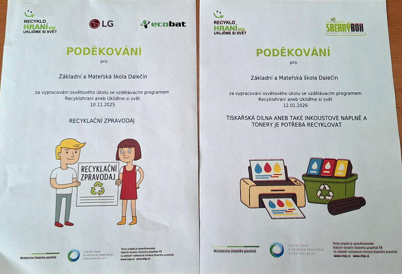 Školní družina je v letošním školním roce zapojena do celorepublikového projektu praktického a hravého vzdělávání – Recyklohraní. Na plnění úkolů...
